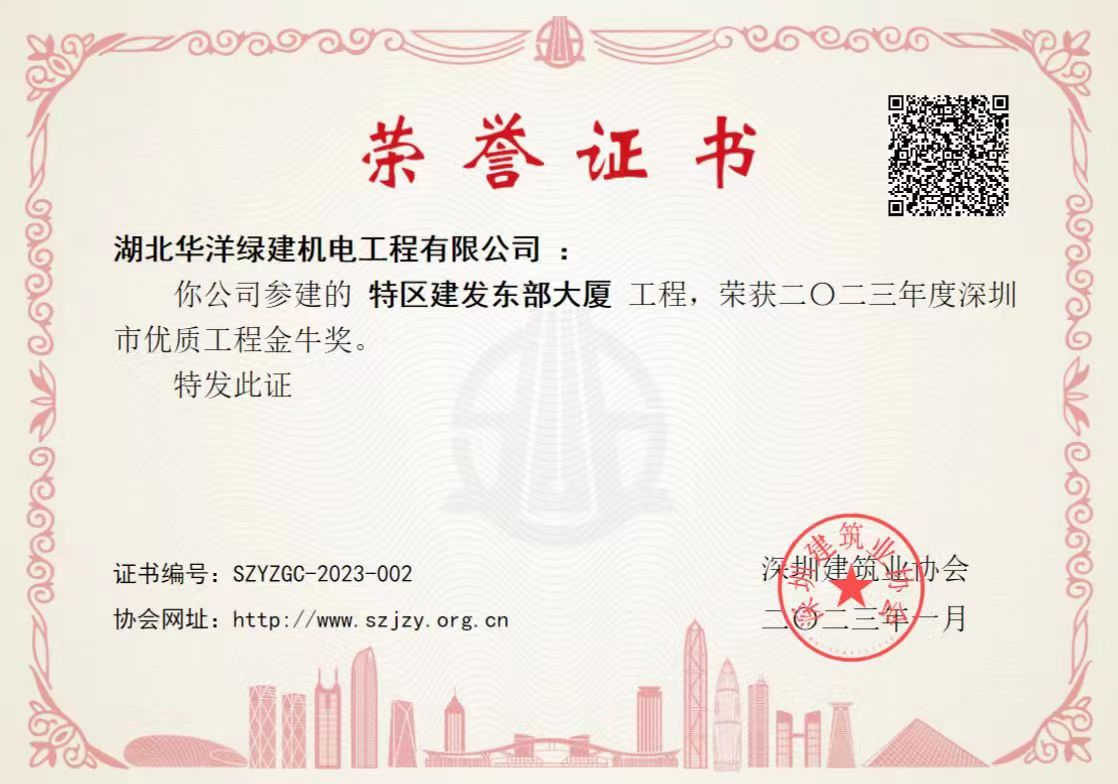 2023/01/18 深圳特區(qū)建發(fā)東部大廈項(xiàng)目榮獲“深圳市優(yōu)質(zhì)工程金牛獎”